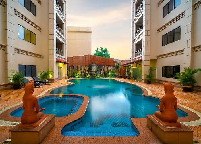 L'Hotel Dragon Royal Angkor Siem Reap, a 4 stelle, è situato a circa 25 minuti a piedi dal Tempio di Preah Ang Check e Preah Ang Thom e a una distanza di 6 km dal Tempio di Angkor Wat. Tutti gli ospiti possono usufruire di Wi-Fi in tutta la struttura e dell'accesso a una palestra.